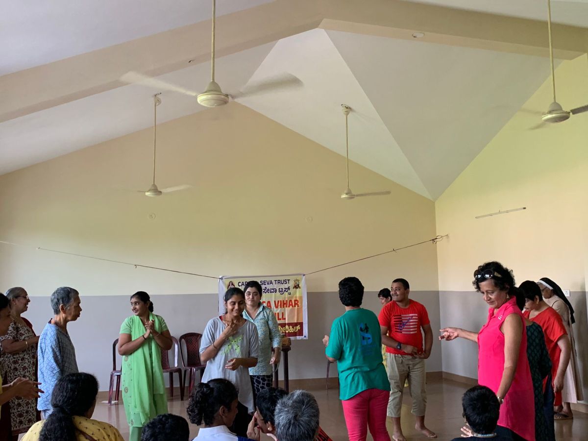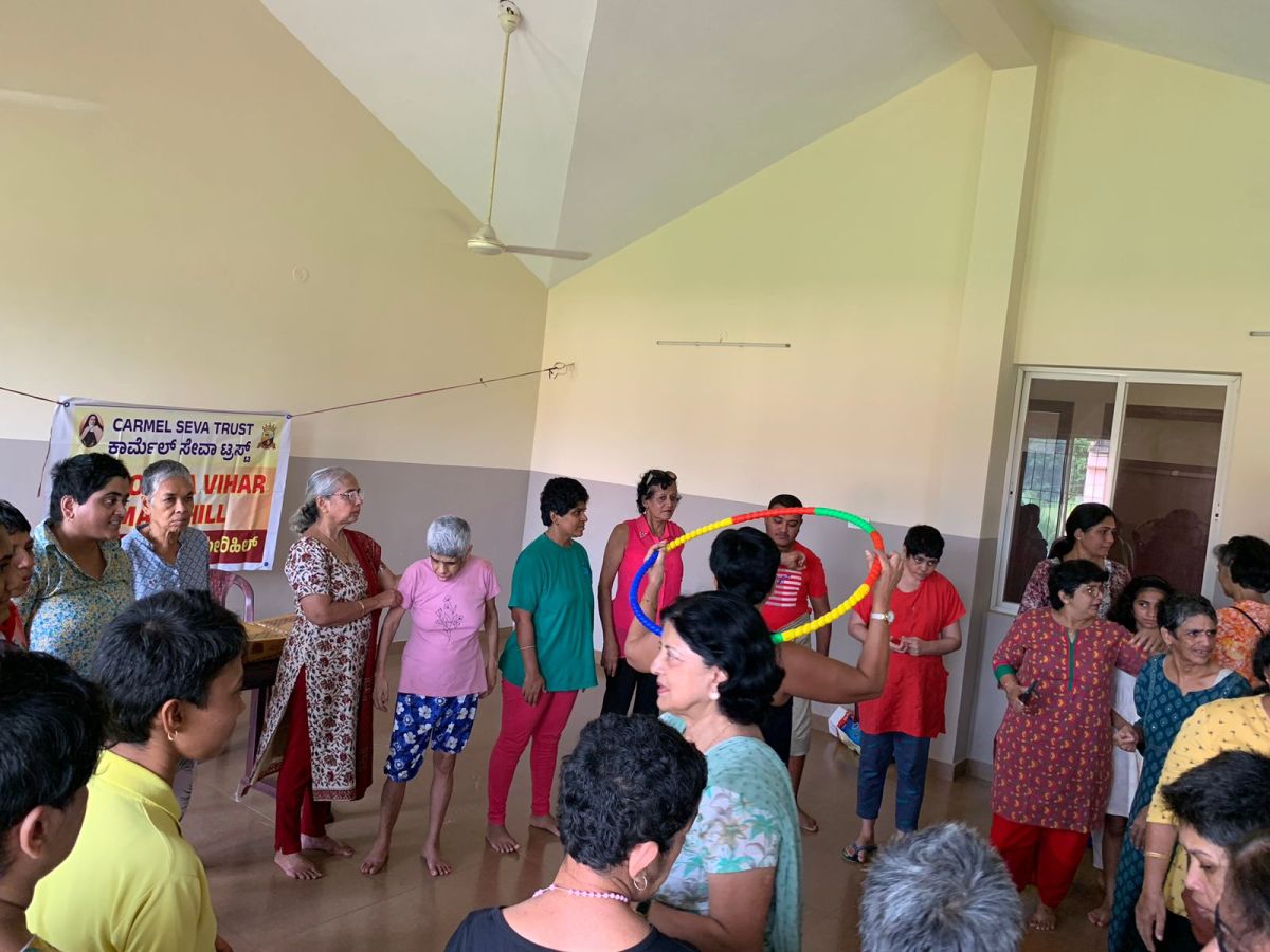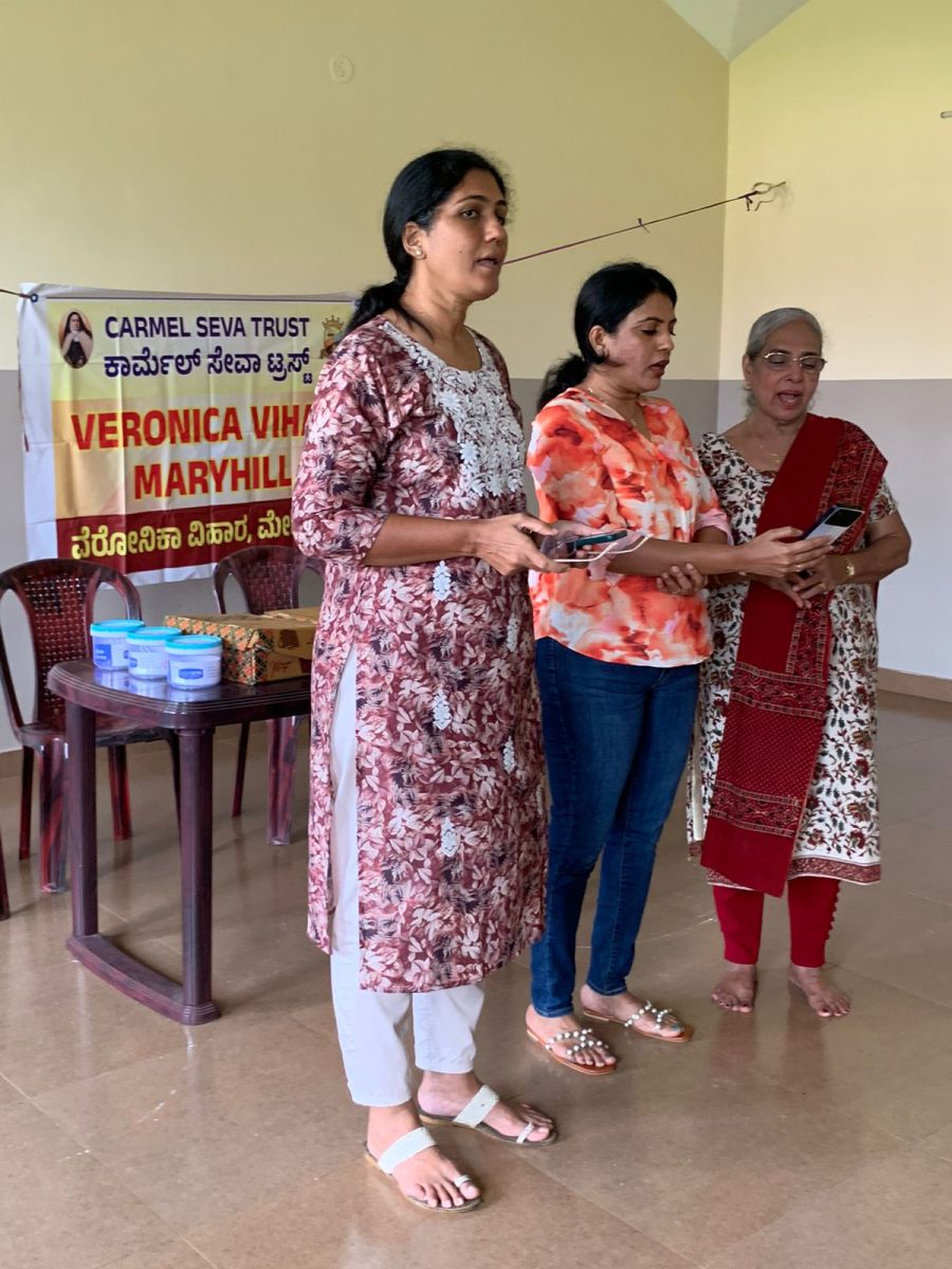 The alumni were warmly welcomed by the sisters and the 19 residents, creating an immediate atmosphere of warmth and camaraderie. The evening was carefully planned to engage and uplift everyone involved. It began with a heartfelt prayer song by Ms. Asha Menezes and her team. This was followed by three fun-filled games, organized by Ms. Jeanette Dsouza, Ms. Carol Coelho, and Ms. Joan Lobo, that had the residents eagerly competing for attractive prizes.
