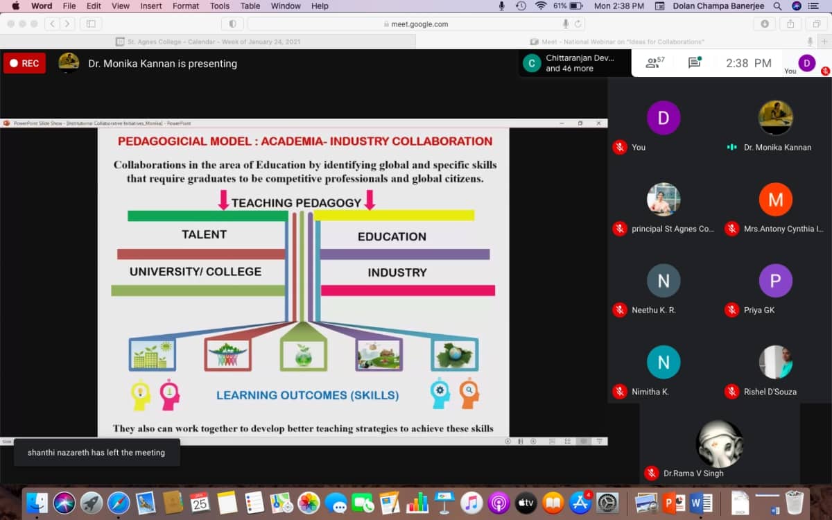 St. Agnes College (Autonomous), Mangaluru in association with Sophia Girls’ College (Autonomous), Ajmer, Rajasthan hosted a National Webinar for Faculty on the topic “Ideas of Collaborations” on January 25, 2021.