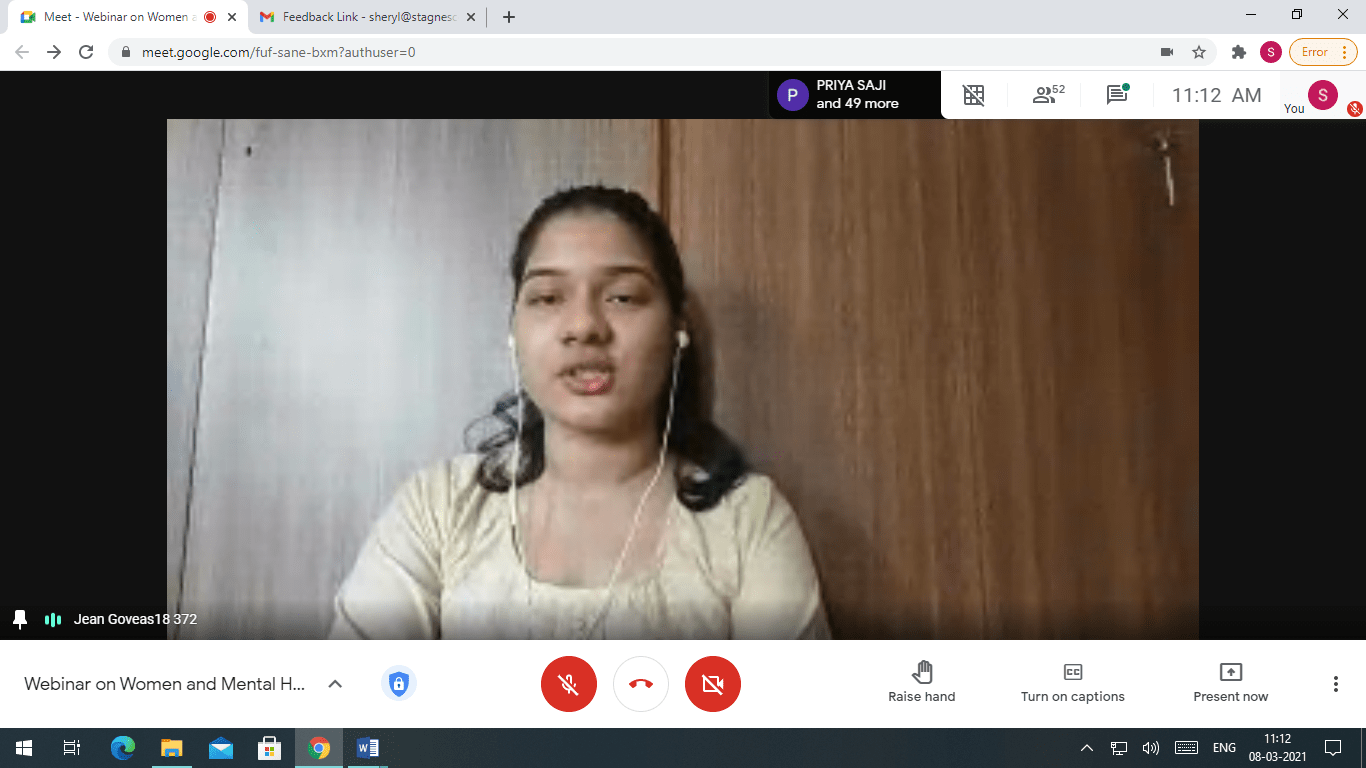 The Webinar began with Mrs Sheryl Preethika, Assistant Professor, Department of Commerce and Women’s Cell Co-ordinator, highlighting the relevance of International Women’s Day and revealing the objective of organising the webinar.