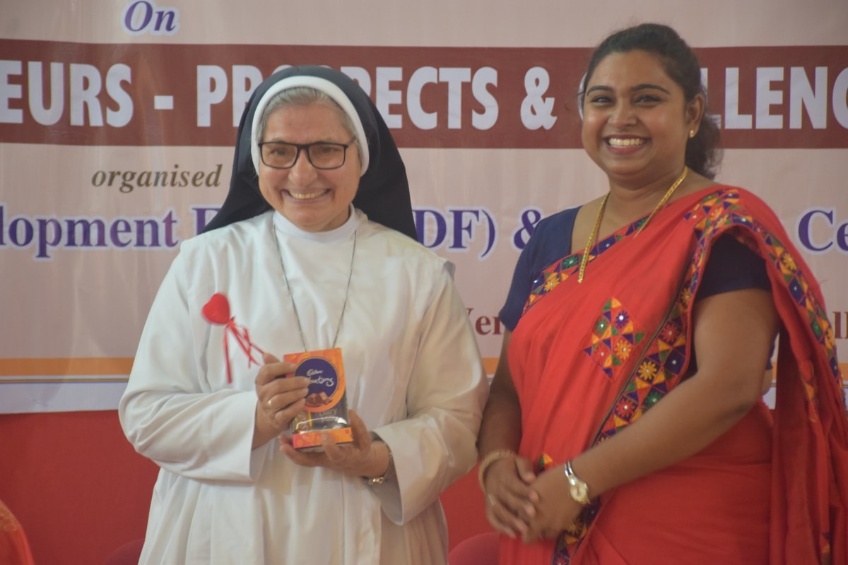 Sr. Dr. M. Jeswina A.C. in her presidential remarks addressed the students to lead a harmonious life and emphasized on developing various qualities and skills to become a successful entrepreneur. She also pointed out that our mother is the greatest role model.