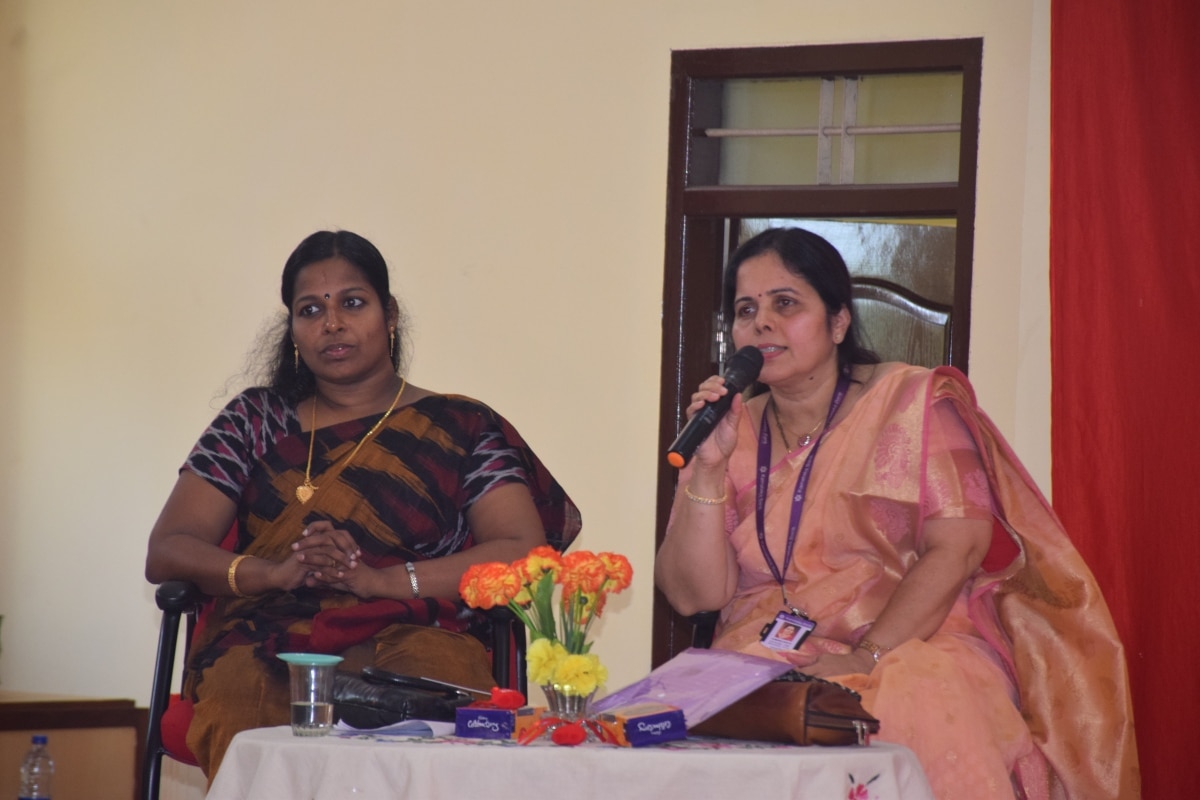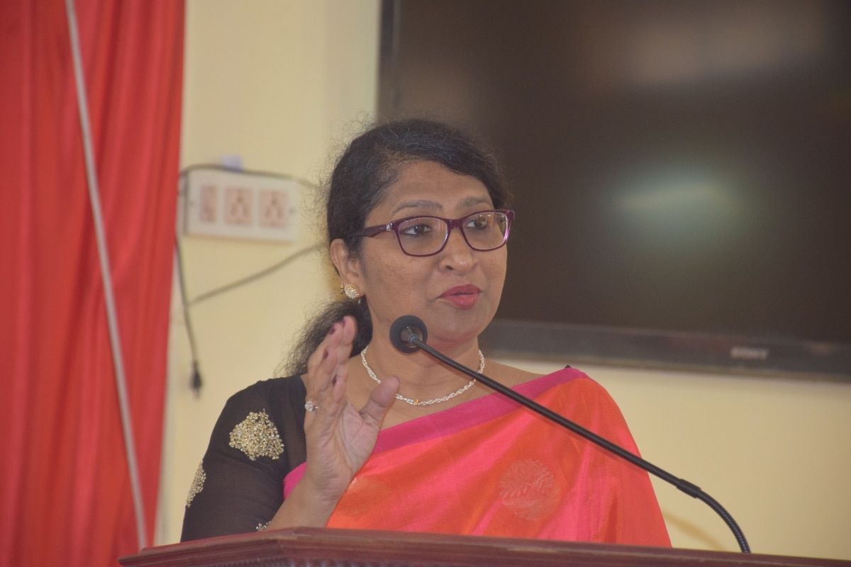 Mrs. Prima D’souza, Convenor Women’s cell, Ms. Aaisha and Ms. Sagarika, the student secretaries were the other dignitaries present on the dais.
