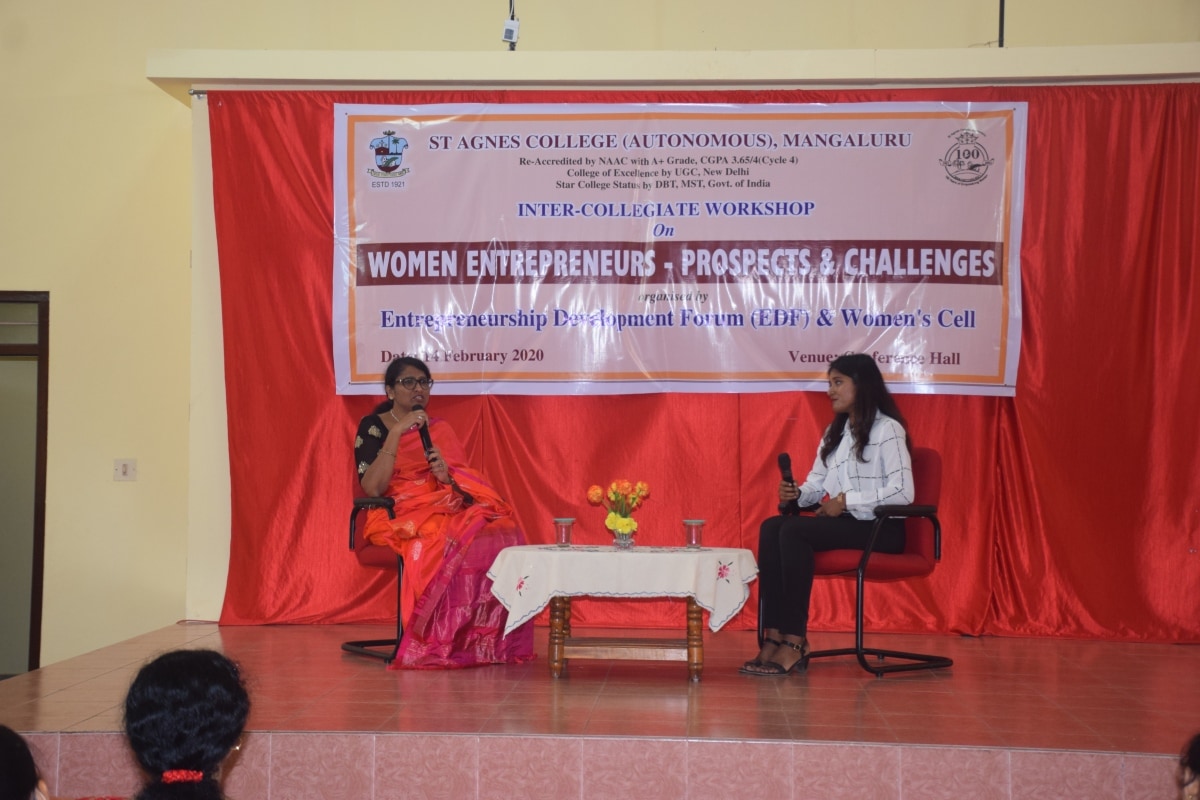 The workshop had four technical sessions on entrepreneurship. Technical session I was conducted by Tushara Ashok of II B.Com from the EDF forum who interviewed Ms. Jc Tanuja Maben and brought out various stimulating Entrepreneurial attitudes.