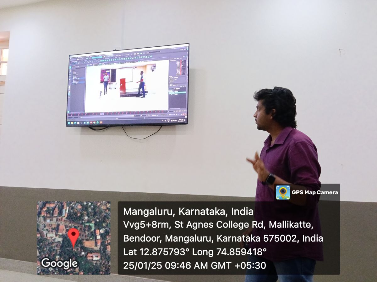 The Department of computer Animation organized a workshop on “Mastering Animation: From 3D Modelling and Texturing to Dynamic Character Animation” on 25/01/2025 in A2. Mr. Vignesh U, Asst Lecturer at SCS First Grade College, Mangaluru was the resource person. A total of 16 students participated in the workshop which included students from 2nd and 3rd year BA/ BSc. Detailed topics were covered regarding 3D Modelling, Rigging, Texturing, Animation, Motion Capture and future prospects in the industry.