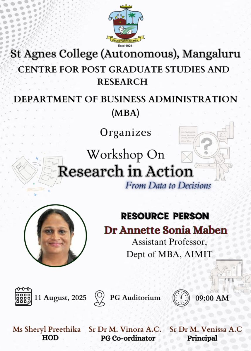 The session began with Venessa from 2nd MBA welcoming the gathering, followed by a prayer led by Cliyon from 1st MBA. Vanshita of 2nd MBA delivered the welcome address and introduced the guest speaker, Dr. Annette Sonia Maben, to the audience.