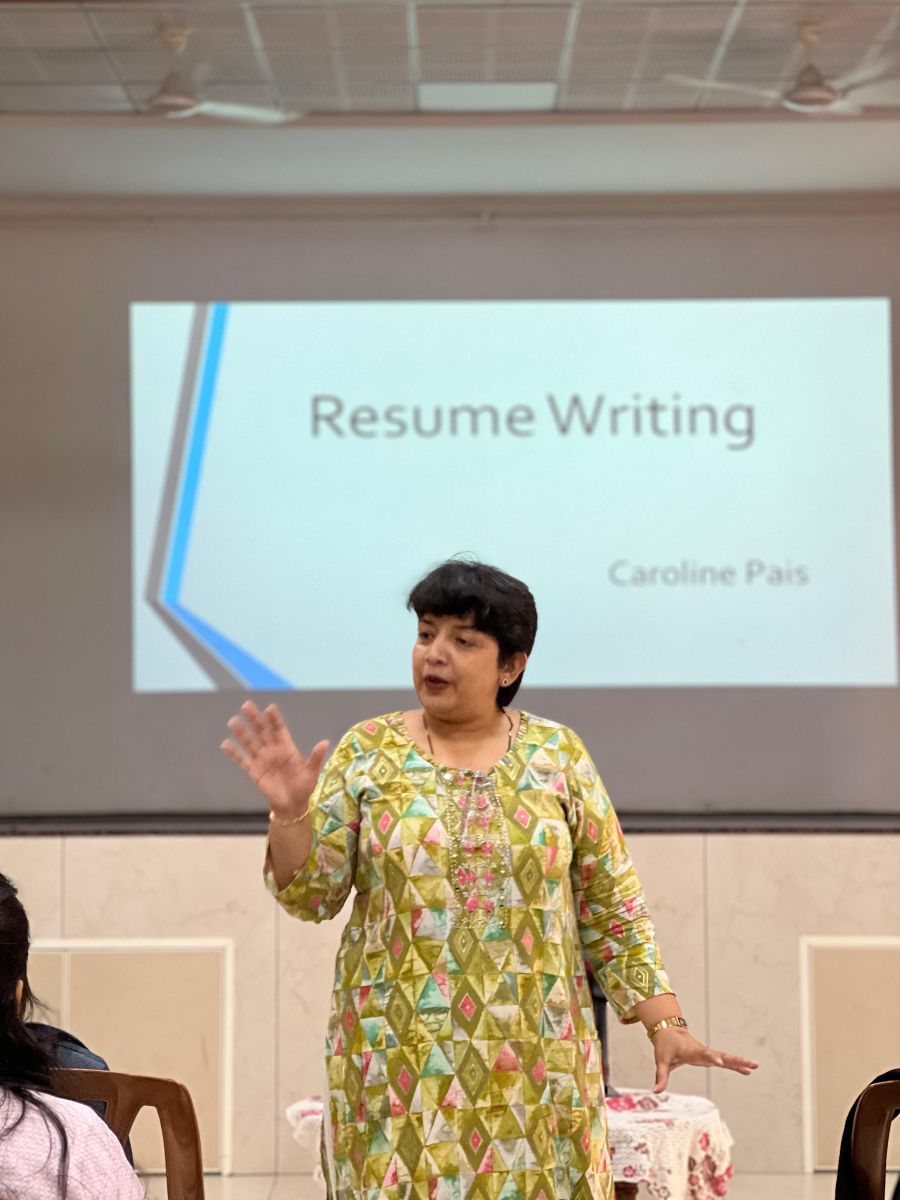 The resource person for the workshop was Ms. Caroline Maria Pais, a Life Skill Facilitator and Advocate. She delivered an insightful and interactive session, covering key aspects of job preparation: