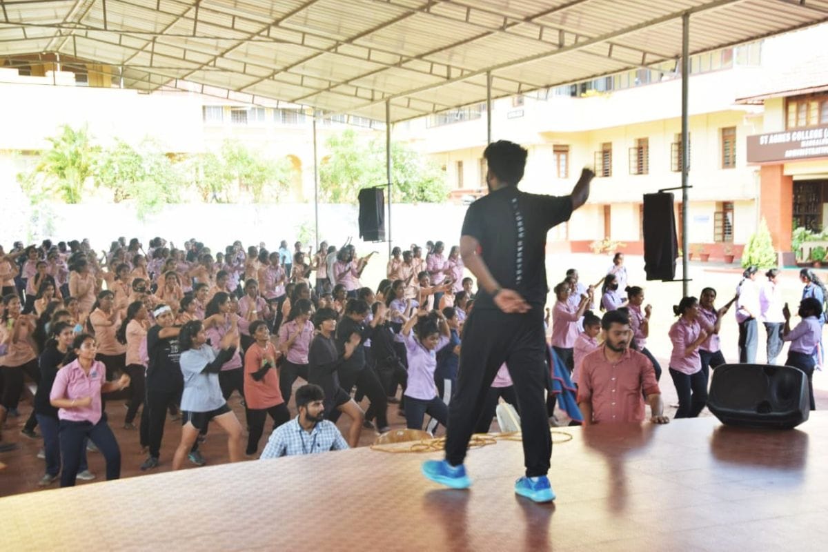 Department of Physical Education of St Agnes College (Autonomous), Mangaluru organised a workshop or Zumba on 3 June 2022. Sr Dr M. Venissa A.C. the Principal inaugurated the workshop. Mr Shashank, a certified Zumba instructor from Zeuse Fitness Club was the resource person. Sr Dr M. Venissa A.C. gave an inaugural address about the importance of fitness. Mr Shashank then proceeded to conduct the session. 250 students of the college took active part in the workshop and enjoyed the session.